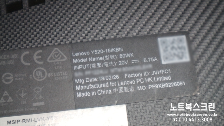 동탄노트북액정수리 레노버 Lenovo Y520-15IKBN 모니터화면깨짐 당일교체